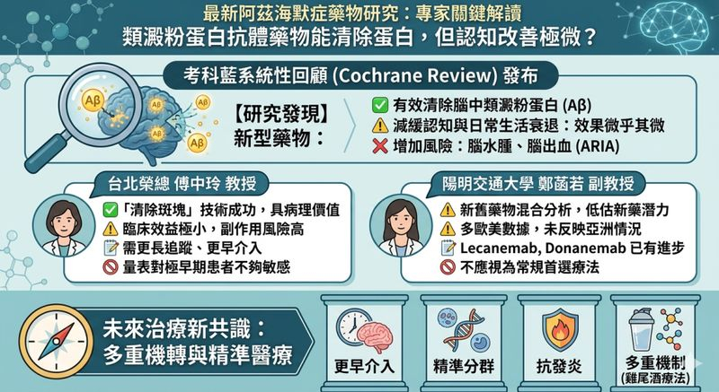 鄭菡若強調,這份研究不代表類澱粉蛋白抗體藥物沒有價值,而是提醒我們不應把它視為失智症的常規首選療法。她認為,未來除了持續累積臨床使用經驗,也應同步發展抗發炎等其他機制療法,朝多重機轉治療方向前進。